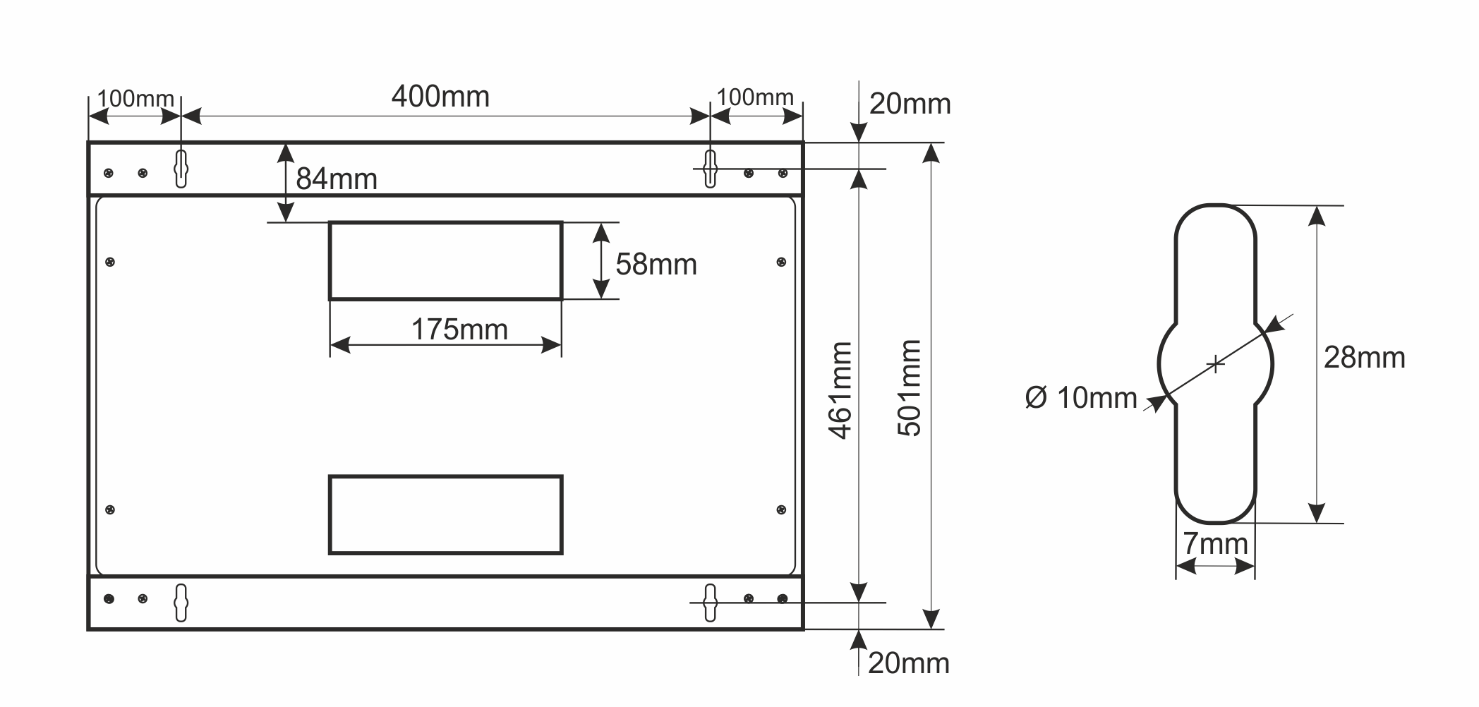 | Notes | – changeable door – right or left – ventilation holes in the top panel (2 x 105x105mm – mounting dimensions) – cable ducts in the top and bottom panel – changeable door – right or left – possibility of disassembly rear panel |